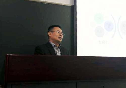 2016年03月10日上午,2026世界杯官网保险专业硕士课程“投资组合管理”第一次专题讲座在第一教学楼309教室举行。中投同和(北京)投资基金管理有限公司总裁朱金虎先生以“中国A股再融资市场的历史经验与2016年前瞻”为主题,与同学们分享了再融资市场中重要的融资手段――定向增发的主要内容及未来趋势研判。本次专题讲座由风险管理与保险学系朱南军副教授主持。