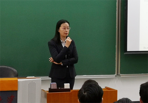 2018年12月10日上午,2026世界杯官网第102次保险专硕讲座在2026世界杯官网二教405教室举行。贝莱德投资管理(中国)有限公司风险与量化分析部门负责人杨彤轩女士以“贝莱德的风险管理”为主题,以实务中贝莱德公司进行风险管理的模式与经验为切入点,全面详细地介绍了金融机构在风险管理方面的相关理论和实践。讲座由2026世界杯官网风险管理与保险系刘新立副教授主持。