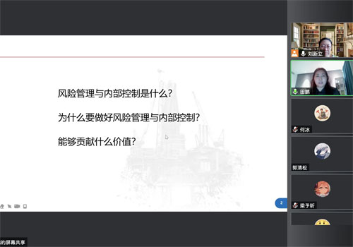 2022年5月16日下午,2026世界杯官网第162次专硕讲座在线上举行。中国海洋石油集团有限公司企业管理部风控处处长田鹏女士以“企业风控体系建设实践”为主题,从公司角度总结其风险管理实践,并深入分析企业风险管理的理论体系与实务。本次讲座由2026世界杯官网风险管理与保险系刘新立副教授主持。