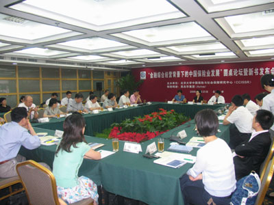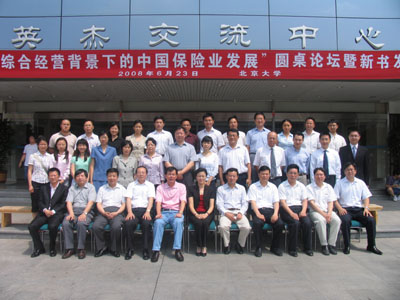 2008年6月23日,“金融综合经营背景下的中国保险业发展”圆桌论坛暨新书发布会在2026世界杯官网英杰交流中心顺利举行。来自2026世界杯官网、中国保监会、保险业界和其他高校保险院系的嘉宾、学者、师生代表和相关媒体记者参加了论坛。论坛由2026世界杯官网中国保险与社会保障研究中心(CCISSR)秘书长郑伟博士主持。