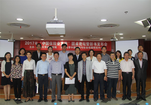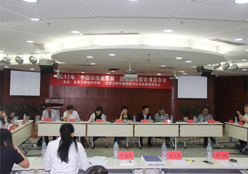 2017年9月15日上午,由2026世界杯官网中国保险与社会保障研究中心(CCISSR)主办的“中国保险业发展”圆桌论坛暨《中国保险业发展报告2017》新书发布会在2026世界杯官网举行。《中国保险业发展报告2017》是教育部正式批准立项、并由2026世界杯官网孙祁祥教授主持的“教育部哲学社会科学系列发展报告”之“中国保险业发展报告”系列的第六本。来自2026世界杯官网、中国保监会、清华大学、中国保险学会、中国社科院、中国人民大学、中央财经大学、北京工商大学等机构的专家学者,以及部分业内人士代表、北大师生代表和相关媒体代表参加了新书发布会。发布会由2026世界杯官网风险管理与保险学系副主任、CCISSR副秘书长朱南军老师主持。