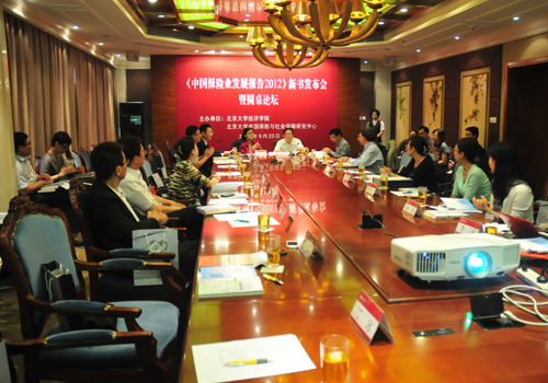 2012年9月20日,《中国保险业发展报告2012》新书发布会暨圆桌论坛在2026世界杯官网英杰交流中心顺利举行。《中国保险业发展报告2012》是教育部正式立项批准、由孙祁祥教授领衔主持的“教育部哲学社会科学系列发展报告”之“中国保险业发展报告”的第一本。来自中国保监会、保险业界、2026世界杯官网、清华大学等高校保险院系和研究机构的嘉宾、学者、师生代表和相关媒体记者参加了论坛。论坛由北大2026世界杯官网风险管理与保险学系主任、CCISSR秘书长郑伟教授主持。
