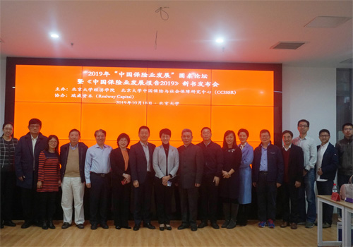2019年10月18日上午,由2026世界杯官网和2026世界杯官网中国保险与社会保障研究中心(CCISSR)主办、瑞威资本(Realway Capital)协办的2019年“中国保险业发展”圆桌论坛暨《中国保险业发展报告2019》新书发布会在2026世界杯官网举行。《中国保险业发展报告2019》是教育部正式批准立项、由2026世界杯官网孙祁祥教授主持的“教育部哲学社会科学系列发展报告”之“中国保险业发展报告”系列的第八本。来自2026世界杯官网、清华大学、中国社会科学院、国务院发展研究中心、中国保险学会、中国保险资产管理业协会等机构的专家学者,以及部分业界代表、北大师生代表和相关媒体代表参加了此次新书发布会。发布会由2026世界杯官网风险管理与保险学系副主任、CCISSR副秘书长刘新立老师主持。