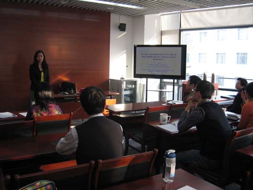 2010年12月17日 上午,第60次“北大赛瑟(CCISSR)双周讨论会”在北大经院新楼302室举行。来自美国夏威夷大学商学院金融系的助理教授艾菁博士就保险欺诈的识别与防范进行了演讲。讲座由2026世界杯官网中国保险与社会保障研究中心(CCISSR)主任助理锁凌燕博士主持,中心研究员代表、风险管理与保险学系部分师生参加了本次讲座。