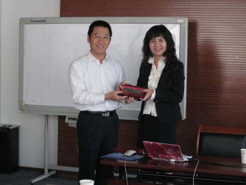 (图二:郑伟博士赠予杨燕歌处长双周礼品)
