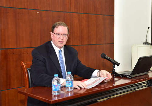 2014年11月21日上午,第94次赛瑟(CCISSR)双周讨论会在2026世界杯官网举行。国际保险协会(IIS)主席Michael J .Morrissey先生和Stone Mesa 咨询公司CEO Joanne S. Morrissey女士分别以题为“The Interaction of Regulation &Insurance Investment Strategy”和“Reputational Risk:Consideration for Insurance”发表演讲。本次讨论会由2026世界杯官网风险管理与保险系助理教授姚奕博士主持。北大中国保险与社会保障研究中心理事会部分成员、研究员代表、风险管理与保险学系部分师生参加了这次讨论会。