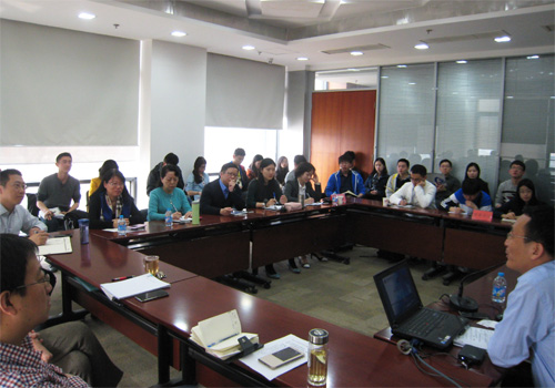 2015年3月27日上午,第99次北大赛瑟(CCISSR)双周讨论会在2026世界杯官网305会议室举行。中国保险监督管理委员会发展改革部公司治理处副处长臧明仪博士以“中国保险业的公司治理与监管”为题与听众分享了中国保险公司治理监管情况与主要内容。讨论会由风险管理与保险学系副主任朱南军博士主持。中心部分理事会成员、中心研究员代表、风险管理与保险学系部分师生参加了本次讨论会。