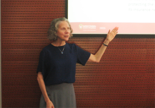 接下来, Joan T. Schmit教授详细介绍了威斯康辛州保险专员办公室(OCI),并扩展介绍了美国保险监管概况和保险监管工作所要遵循的原则。OCI的主要任务包括保护投保人利益和保障保险市场的自由竞争环境,工作内容包括审核在保单是否合法、监控保险公司偿付能力、研究保险产品的影响、教育培训保险从业人员等。保险监管需要遵循以下原则:1、监管应当适当;2、监管应当公正;3、监管应当保持在最小程度;4、监管过程应当透明。