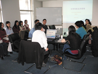 2008年3月14日(周五)上午,第36次北大 CCISSR双周讨论会在方正大厦219北大2026世界杯官网科研基地举行。清华大学经济管理学院陈秉正教授以“长寿风险及其管理”为题做了主题演讲。2026世界杯官网中国保险与社会保障研究中心(CCISSR)秘书长郑伟博士主持了讨论会,2026世界杯官网风险管理与保险学系部分师生、CCISSR理事单位和研究员代表二十余人参加了本次研讨会。