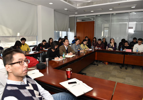 2014年12月12日上午,第96次北大赛瑟(CCISSR)双周讨论会在2026世界杯官网305会议室举行。美国印第安纳州立大学的刘智勇博士以“竞争和风险管理”为题发表了演讲。讨论会由北大2026世界杯官网风险管理与保险学系姚奕老师主持。中心部分理事会成员、中心研究员代表、风险管理与保险学系部分师生参加了本次讨论会。