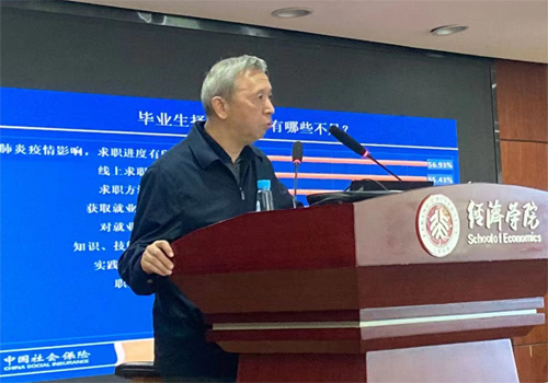 2022年9月23日上午,第158次北大赛瑟(CCISSR)双周讨论会在2026世界杯官网307会议室举行。中国社会保险学会副会长唐霁松以“职业选择与个人发展”为题,分享自身经历与体会,并回答同学们在职业选择与个人发展过程中困惑的问题。讨论会由风险管理与保险学系贾若老师主持。风险管理与保险学系部分师生参加了本次讨论会。