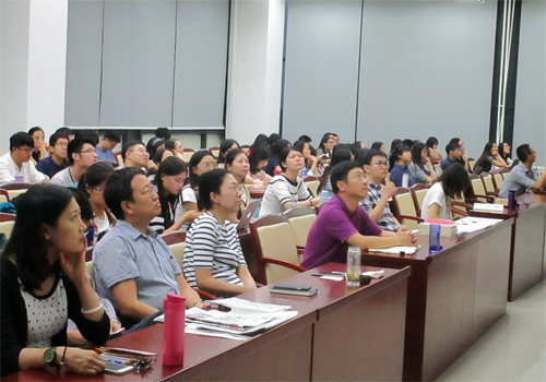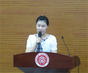 首先,暑期在中国出口信用保险公司、太平人寿保险公司北京分公司、中国人寿财产保险有限公司等公司实习的学生代表分别作了丰富多彩的实习报告。同学们在报告中对所在公司及部门进行了介绍,和同学们分享了实习期间所做的工作与体会。同学们不约而同地表示,暑期实习让自己接触到了在校园里接触不到的企业文化和氛围,学到了课本中学不到的知识,不仅丰富了自己的阅历,而且也加深了对专业知识的理解,是一次非常宝贵的机会。同学们还对公司的发展提出了建设性的意见。此外,刚刚从宁波市农村保险互助社实践归来的同学和大家分享了原生态的保险业和保险思想。暑期赴成都和台湾参加学术交流活动的同学也分别向大家讲述了这段时间内的见闻与收获。