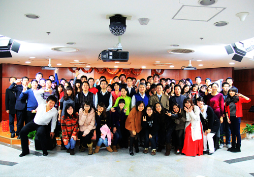 又是一轮热闹之后,迎来了09级韩国学生的精彩表演,三位同学优美浑厚的嗓音震撼了全场。接下来的是同学们的雷歌串烧节目,其中张波同学以古装长发扮相惊艳全场,他领衔演唱的《新贵妃醉酒》让大家叹为观止,整个现场成为了一片欢乐的海洋。之后的游戏环节“接歌”再一次点燃了全场,平日里稳重严肃的各位老师纷纷展现活泼诙谐的一面。