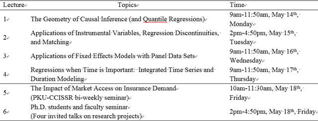 May 14th to May 18th, 2018; Room 302, School of Economics, Peking University