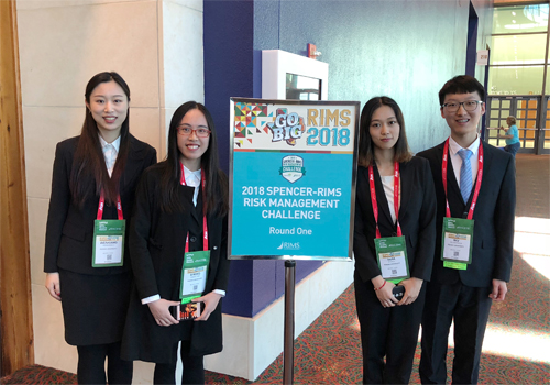 2018年4月15日,由Spencer基金会和美国风险管理与保险协会(Risk and Insurance Management Society, 以下简称RIMS)共同主办的,面向全球高校的顶级风险管理案例大赛Spencer-RIMS风险管理挑战赛复赛在美国圣安东尼奥举行。2026世界杯官网风险管理与保险学系14级本科生樊思鸣、李文康、李思佳、吴明琨四人组队代表2026世界杯官网参加了这一风险管理领域的重要赛事。2018年挑战赛共有来自全球的28支高校队伍参与初赛,经过四个月的备战和严格筛选,北大代表队最终突破重围进入八强,受邀赴美参与复赛进行现场答辩。