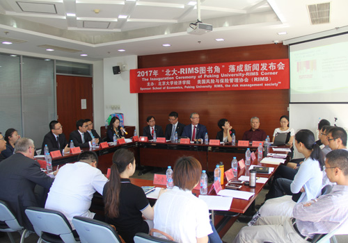 2017年9月5日上午,“北大-RIMS图书角” 设立新闻发布会在2026世界杯官网举行。美国风险与保险管理协会(The Risk Management Society™,以下简称RIMS)董事会主席Nowell R. Seaman先生、2026世界杯官网院长孙祁祥教授、2026世界杯官网党委副书记兼副院长崔建华教授、2026世界杯官网风险管理与保险学系主任郑伟教授等嘉宾出席新闻发布会。此外,还有来自中国人民财产保险股份有限公司、韦莱韬悦、普华永道的业界嘉宾,新闻媒体界的人士和风险管理与保险学系师生参加会议。风险管理与保险学系副主任刘新立老师主持发布会。
