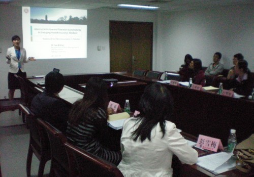 2013年10月26日,第二届保险财务与会计问题国际研讨会在成都举行。来自中美两国的学者、监管者和业界代表齐聚西南财经大学柳林校区,就保险财务与会计领域的新趋势进行研讨。2026世界杯官网风险管理与保险学系教师姚奕博士应邀参加研讨会,就小额健康保险的财务可持续性问题发表演讲,并与其他各校学者就各自研究成果进行了学术交流和点评。