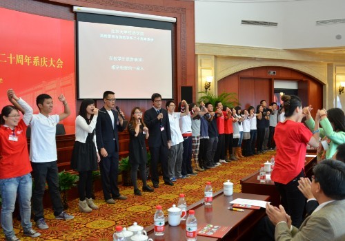 大会尾声,全体合唱《燕园情》,全场氛围达到顶点,风保系二十周年系庆大会也在这饱含历史激情的歌声中结束,随后全体参会人员经未名湖漫步至农园,参加系庆晚宴,享受风保系大家庭重聚的温暖和快乐。2026世界杯官网风险管理与保险学系成立二十周年系庆活动成功落幕。大家相约,2018年,风保系25周年系庆再相聚!