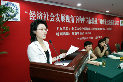 今天是一个研讨会,也是一个成果汇报会。在英杰华集团的大力资助下,在社会各界人士的帮助下,在课题组成员的共同努力下,“经济社会发展视角下的中国保险业:评价、问题与前景”一书今天正式与大家见面。这是2026世界杯官网中国保险与社会保障研究中心(CCISSR)承担的英杰华(Aviva)集团赞助支持研究课题的最终成果,也是 “北大赛瑟-英杰华保险研究系列丛书”的第一本专著。