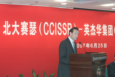 英杰华董事长舍曼勋爵是我们此次与北大赛瑟合作的高级顾问。他因故无法出席今天的仪式,请我向各位表示歉意。