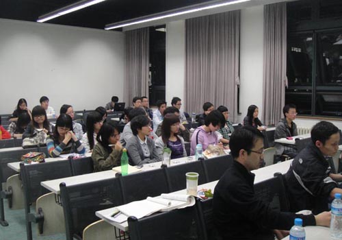 首先,三位学长分别与大家分享了自己的工作经验,并给在座的同学们提出许多中肯的建议。张磊和刘哲两位学长分别简要介绍了自己的工作经历和主要从事的领域。张丹学姐从同学们就业的实际需要出发,比较详细地讲述了自己的面试经验和面试技巧。她系统地介绍了面试时的着装、仪态、陈述方式等方面的技巧,并与大家分享了自己参加保洁公司面试时的经验,她认为在求职面试过程中最重要的是充分了解自己并对应聘的各个环节都认真准备。针对三位嘉宾的发言, 陈凯老师做简要总结,并鼓励大家提出自己的问题。