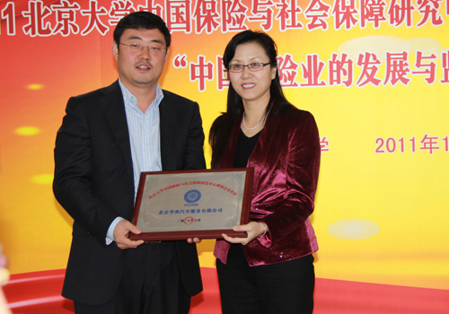 会议期间,中心主任孙祁祥教授为新加入的理事会员单位――北京华奥汽车服务有限公司颁发了理事会员牌匾。北京华奥汽车服务有限公司提供汽车延长保修产品,并与财产保险公司合作,为国内汽车拥有者提供创新的风险管理服务。