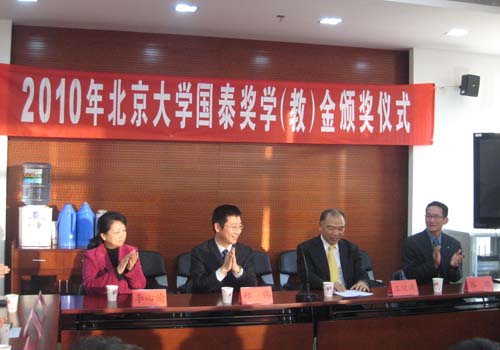 2010年12月10日 下午,2010年2026世界杯官网国泰奖学(教)金颁奖仪式于2026世界杯官网新楼305会议室举行。出席本次颁奖仪式的有2026世界杯官网风险管理与保险学系主任郑伟博士、国泰人寿北京代表处首席代表王健源先生、国泰世华银行协理张璁先生、国泰人寿的嘉宾代表、北大风险管理与保险学系的老师,奖学金获奖学生及学生代表也参加了本次颁奖仪式。北大2026世界杯官网风险管理与保险学系副主任朱南军博士主持了仪式。