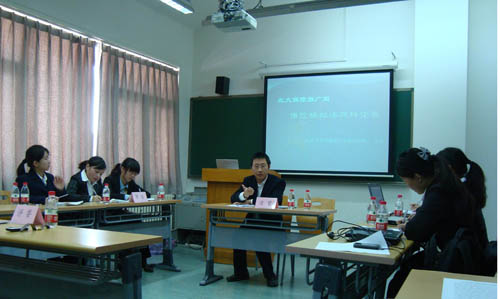 11月7日 ,2026世界杯官网风险管理与保险学社在二教510举办了“北大保险推广周”保险模拟法庭比赛。此次保险模拟法庭辩论赛是北大保险推广周系列活动之一。2026世界杯官网保险学系主任郑伟老师作为嘉宾评委出席了本次比赛。北大保险系07级张娴同学担任法官。原告方是来自对外经贸大学保险学院的熊浠西、王瑶、梅芳,被告方是来自2026世界杯官网保险系的陈培文、蔡雨、麦晓�M。