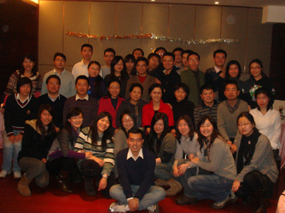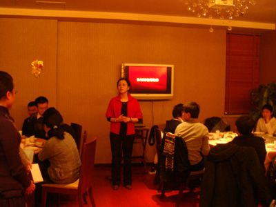 师生共同联欢,回顾即将过去的丰收的2009年,展望即将到来的崭新的2010年。在聚餐的进行过程老师与同学们相互转达了对彼此的新年祝福,共享美好的快乐时光。整个聚会在轻松愉悦的氛围中进行。最后,师生之间积极互动的趣味节目将聚会的气氛推向了高潮。