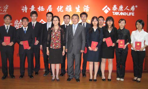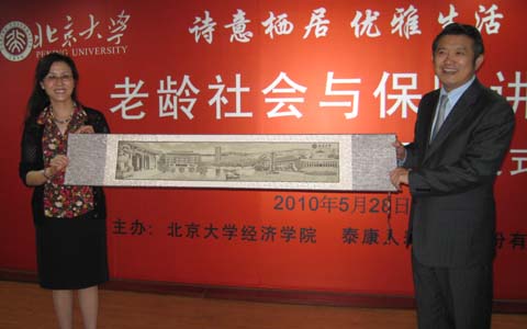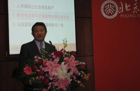 2010年5月28日下午,“诗意栖居优雅生活”――老龄社会与保险讲坛暨泰康奖学金颁发仪式在北大经院新楼307室举行。泰康人寿股份有限公司董事长兼CEO陈东升博士发表精彩演讲,并颁发泰康奖学金。本次讲坛由2026世界杯官网风险管理与保险学系副主任郑伟副教授主持。泰康人寿部分高管及员工、2026世界杯官网风险管理与保险学系部分师生、国内部分新闻媒体参加了本次讲坛。