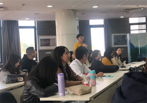 首先,刘新立老师介绍了参加交流会的校内外导师,2019级保险硕士同学向校外导师做了自我介绍。刘老师随后介绍了过去一学年北大保险硕士专业学位授权点的学生培养工作,2019级保险硕士朱博文同学作为学生代表向校外导师报告了大家的学习生活。接下来,校外导师们结合自己的工作经验逐一发言,对学生如何更有效地安排学习,如何更好地与导师交流,给大家提出建议。
