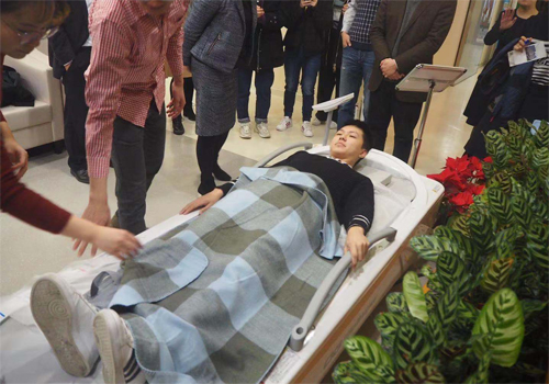 (图2:同学体验按摩床)