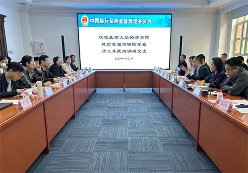 4月21日上午,调研团前往天津银保监局交流。天津银保监局党委书记、局长赵宇龙以及人事处(党委组织部)、办公室、统计信息与风险监测处、普惠金融处、自贸区监管处、财产保险监管处、人身保险监管处、保险中介监管处等部门的负责同志出席了本次座谈会。赵宇龙局长首先对参访师生表示热烈欢迎,并从历史角度对天津经济贸易、产业结构和金融业的发展进行介绍。天津银保监局是银保监会的派出机构,根据银保监会的授权和统一领导,依法依规对辖内银行业和保险业实行统一监督管理。在风险监测方面,天津银保监局采用先进的大数据及信息技术开发了保险全景监测系统、银行区域监测系统和银企信用风险综合评价系统,通过数字可视化等方式对银行保险机构的风险状况进行实时监测、分类管控,切实提升了非现场监管的绩效,增强了风险预警处理的速度和精确度。在普惠金融服务方面,近年来天津银保监局持续加强农村基础金融服务体系建设,优化差异化监管体系,健全三农金融政策体系,完善农村农户信用体系,构建农业保险保障体系并强化三农金融风险管理体系,着力引导金融机构提高服务的有效性,提升金融资源配置效率。在保通保畅方面,天津银保监局通过加大小微贷款资金支持,帮扶货车司机重点群体,开辟绿色通道提升服务效率,创新担保方式,加强保险保障等途径全力保障货运物流通畅,化解行业经营风险。在保险保障方面,天津银保监局积极推进人身保险发展,指导监督“天津惠民保”产品的开发和经营,切实提高天津市民抵御大病风险的能力,并将持续丰富个人养老金产品供给,助力第三支柱养老保险体系健康发展。师生在交流过程中进一步了解了信息科技在风险监管中的应用,从政策监管的角度认识了银行保险机构在服务乡村振兴和三农发展中的重点方向,交流了普惠金融、普惠保险等支持性工具的经营状况和重要作用,对金融监管和金融服务进行了更深入的思考。