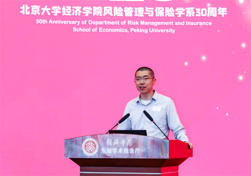 在教师代表发言环节,贾若副教授从历史、现状和未来三方面分享了参与30周年系庆的喜悦。他说,风保系建系之初可谓筚路蓝缕,而30岁的风保系风华正茂,成为了全国风险管理与保险学科建设的标志性项目。在未来,现代社会的风险在快速变化,同时非常深刻地影响我们的国家、社会和每个个人的生活。保险是现代社会风险管理的基本手段,期待与在座同学、校友们一起共创风保系下一个30年的辉煌。