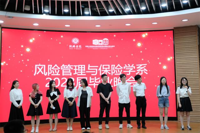 作为毕业晚会的核心环节,本科毕业生和硕士博士毕业生同学们分两组上台发言。大家重温在北大经院风保系的学习和生活,介绍自己的毕业去向,感谢风保系大家庭的温暖和帮助。同学们的毕业感言,有的风趣幽默,有的激情欢乐,有的动情伤感,句句肺腑之言引起了现场师生和家长亲友的强烈共鸣。虽然毕业后大家将铺展不同的人生轨迹,但正如歌词所写“多幸运,我有个我们”。在风保系共度的生命体验将伴随大家今后的成长,而未来这个集体依旧温暖如昨。