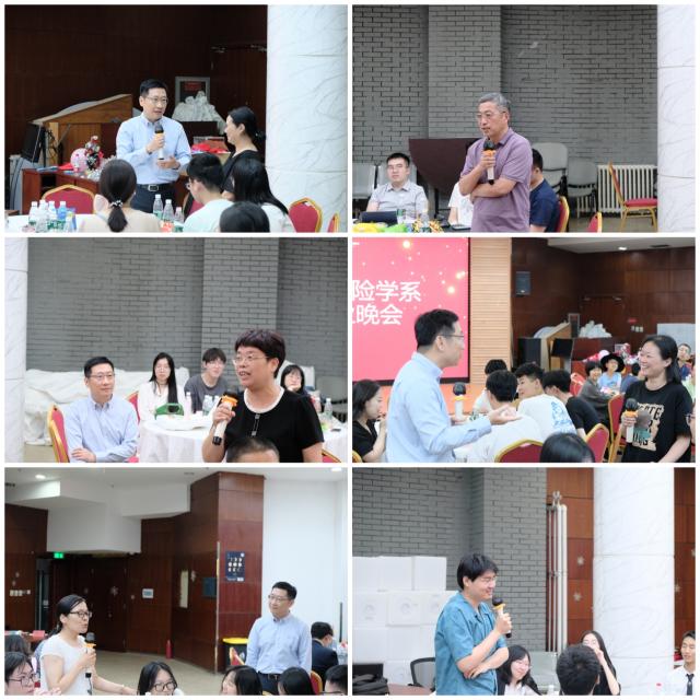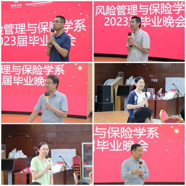 接下来,风保系的老师们也逐一给毕业生同学送上殷殷嘱托。刘新立老师感谢家长们当年选择把优秀的孩子交到北大,交给北大风保系,她叮嘱同学们步入社会后,要一如既往地努力、勇敢,希望大家保持初心,实现梦想。朱南军老师回顾20年前第一次担任班主任的经历,而今年是他教学生涯中第二次担任班主任的班级毕业,他感触颇多,希望大家走出校门后继续相互支持、互帮互助、共同进步。陈凯老师表示,大家从风保系毕业,一生都是风保人,风保系是大家永远的港湾,欢迎大家日后多回来看看。姚奕老师说,对于今年毕业的同学们有特殊的亲切感,虽然未来不可预见,既会有令人羡慕的幸运降临,也会遭遇始料未及的失败和考验,不论如何,请大家坚信否极泰来,终会到达。贾若老师说,同学们几年前羞涩腼腆的模样同毕业感言时的自信大方形成了鲜明对比,很欣慰看到大家的成长,祝愿同学们云城发轫、万里可期。李丽萍老师真诚地感谢大家对于风保系工作和活动的支持,祝福大家前程似锦!
