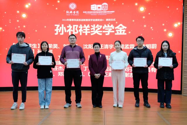 会议的第二部分是奖学金颁奖仪式。陈凯老师首先简要介绍了校友奖学金(包括九五先锋奖学金、九六冀望奖学金、九七创新奖学金、相约九八奖学金、险峰奖学金)和孙祁祥奖学金的设立背景,随后宣读了2022-2023年度奖学金获奖名单,并邀请捐赠系友代表和孙老师为同学们颁奖。获奖同学包括林楷皓(九五先锋奖学金),王焕楷、李祥谦(九六冀望奖学金),高铭谦、谭谨捷(九七创新奖学金),温煜馨、刘思含(相约九八奖学金)、贺灿春(险峰奖学金),和毛荣昊、刘姿邑、沈阳、汪清宇、周孟霖、李明蔚(孙祁祥奖学金)。此前,风保系还向部分同学颁发了“九零国经青春助学金”。