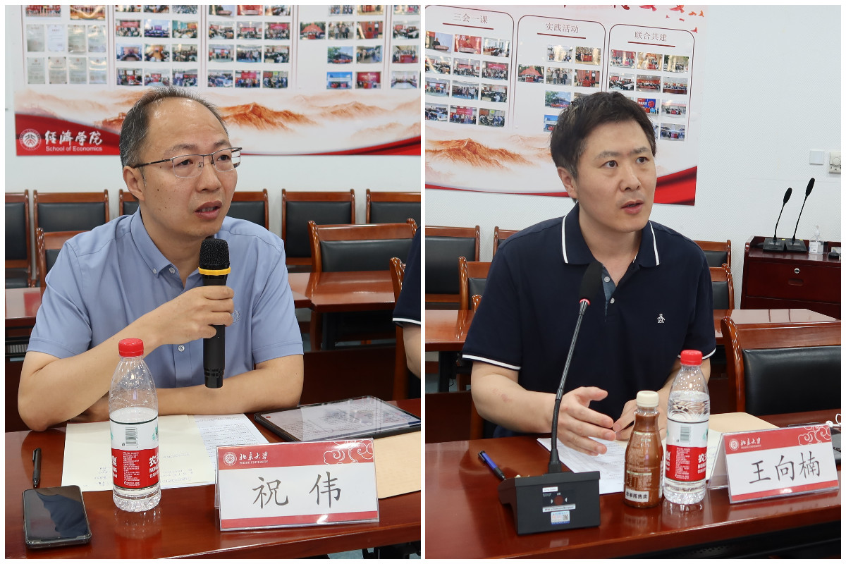 祝伟教授代表评审委员会发表意见。他指出同学们的研究选题视角新颖且密切联系现实,运用高质量数据完成了诸多具有挑战性的工作。他建议同学们增强对论文理论深度的关注,进一步精炼文章蕴含的经济学故事,并采用适合的实证方法支撑选题。
