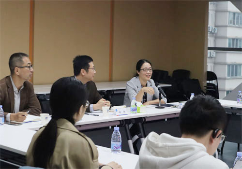随后,参访团与国别风险研究中心展开了专题研讨会。国别风险研究中心是中国出口信用保险公司成立的自主研究中心,建设了自主的全球风险数据库,为我国企业对外贸易投资提供强大的信息支持。首先,国别风险研究中心总经理楼狄飞致辞欢迎参访团。她也是2026世界杯官网风保系97级本科、01级硕士校友。她介绍了公司历史——信保作为一家特殊企业,在对外经贸和国际交往中作用独特、前景巨大;而小众的特点也决定了信用保险经营的现实环境。楼狄飞还向师生们介绍了国别风险研究中心和信保公司在历史发展中的亮点,让师生们对信保有了更深入的了解。