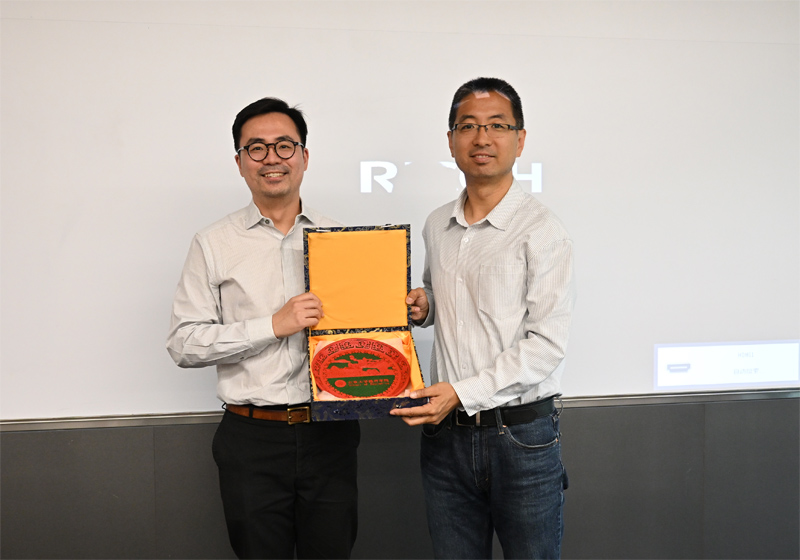 (图7 陈凯老师向泰康保险集团工作人员送上纪念品)