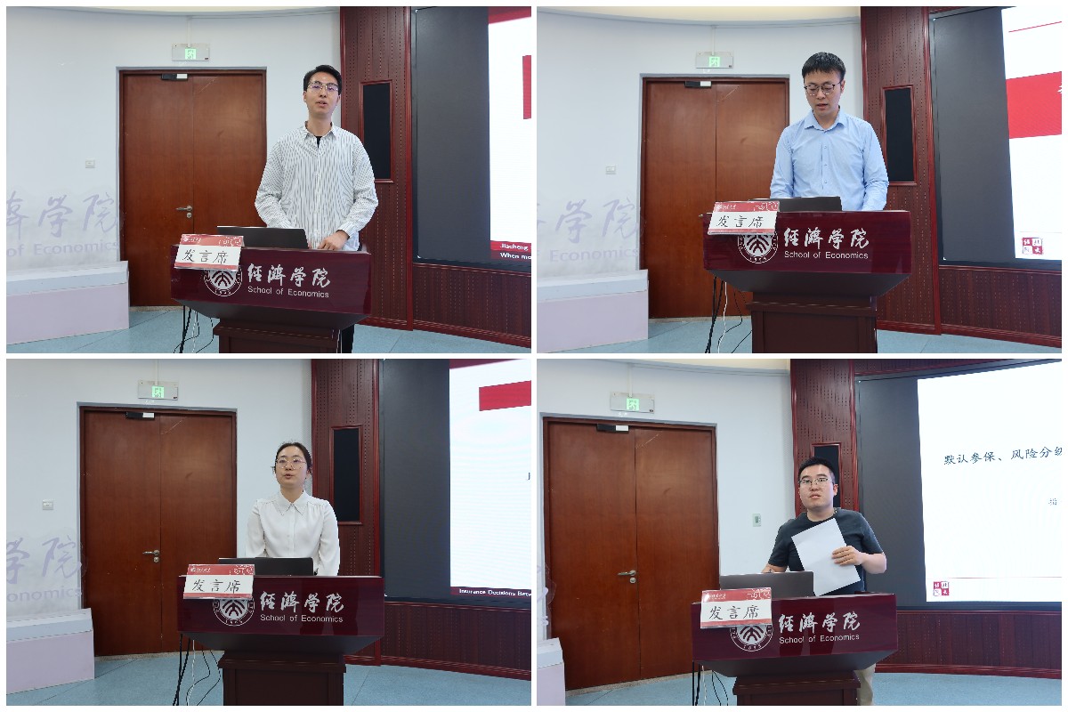 2021级博士生尹晔汇报的论文题目是《默认参保、风险分级定价与商业健康险消费者福利》。商业健康险市场良好运转受困于逆向选择,要推动中国商业健康险市场进一步发展,需要有效的逆向选择市场应对措施,例如默认参保和风险分级定价。文章基于具有代表性的商业健康险承保和理赔数据开展研究,发现默认参保和风险分级定价均能有效缓解逆向选择、提升消费者福利。但是两者具有不同的分配效应,相较于默认不参保以及均一保费,默认参保可以提高全体消费者的福利,而风险分级定价可以大幅提升低风险者的福利,但会降低高风险者的福利。在实施风险分级定价后,再实施默认参保对于消费者福利提升有限,这是因为虽然默认参保留下了低风险者,但是风险分级定价阻断了不同风险群体间的交叉补贴。默认参保在限制风险定价的商业健康险中能发挥较大作用。以上结论对于优化商业健康险市场监管政策有重要参考价值。