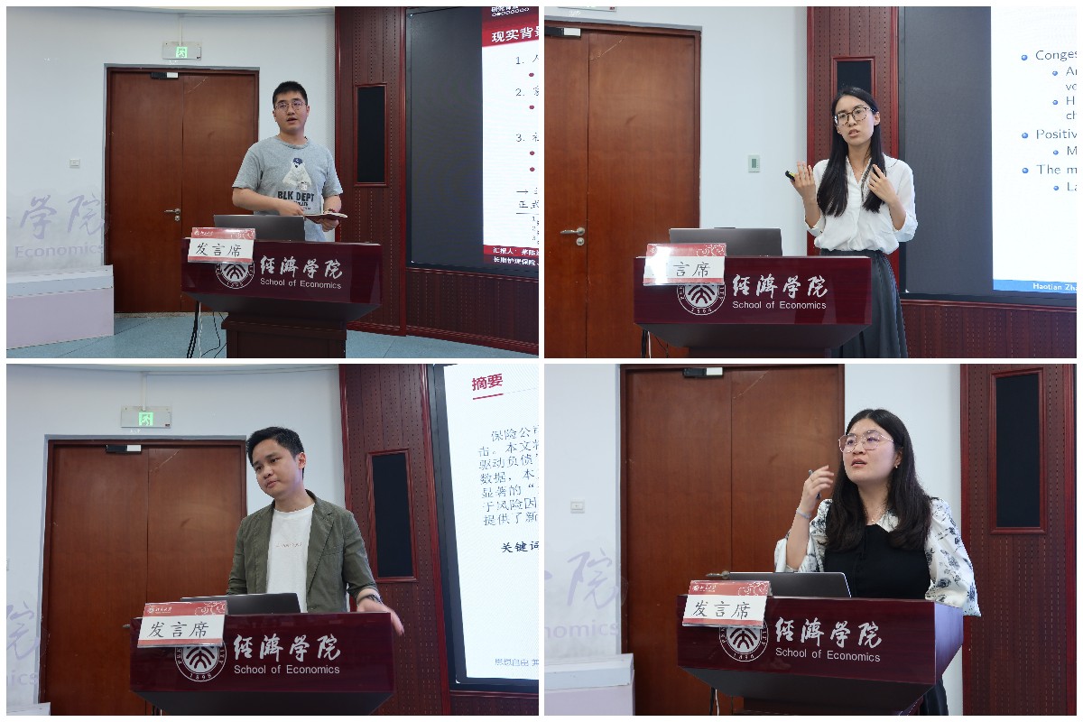 2022级博士生李岱沅汇报了论文《保险公司是资产绝缘体吗?——基于中国资本市场经验》。保险公司特殊的资本结构可以发挥资产绝缘体效应,使其权益价值免受金融市场波动的冲击。文章将保费决策引入金融中介定价机制,检验发现资产驱动负债模式使公司资本结构的MM定理失效。通过匹配保险公司重仓股资产组合和股价,他发现险资资产和权益风险因子暴露错配而表现出逆周期非对称性的资产绝缘体效应。文章为理解新兴市场保险业金融中介角色及其在资本市场中发挥的作用提供了新证据。