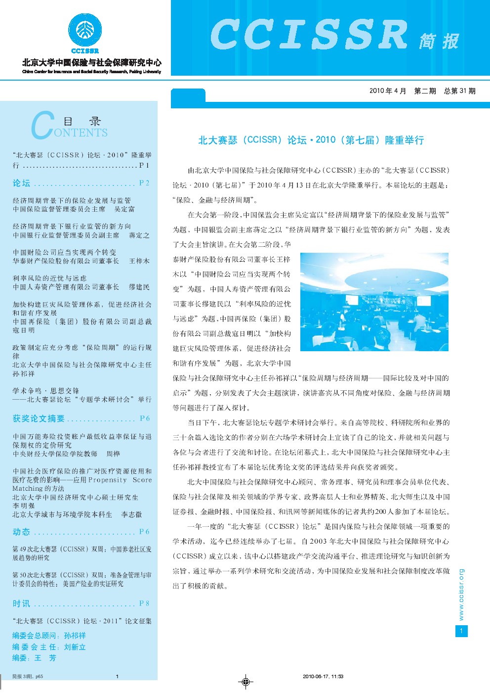 “北大赛瑟(CCISSR)论坛・2010”隆重举行............P1