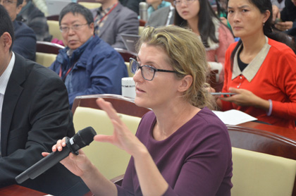 Prof. Wang gave a presentation titled “Urban Scale, Population Density and Structural Dynamics”. He analyzed the tendency of industrial structure indicator among megalopolis, big cities and small-medium cities. The data shows that manufacture is the main industry exiting the megalopolis, while as for the big cities and small-medium cities, it is the main industry to entry. Therefore the megalopolis will be the engine of China’s industrial structure upgrading. At the same time, there will be a trend that China ends up with a series of urban agglomeration based on megalopolis, surrounded by big cities and small-medium cities.