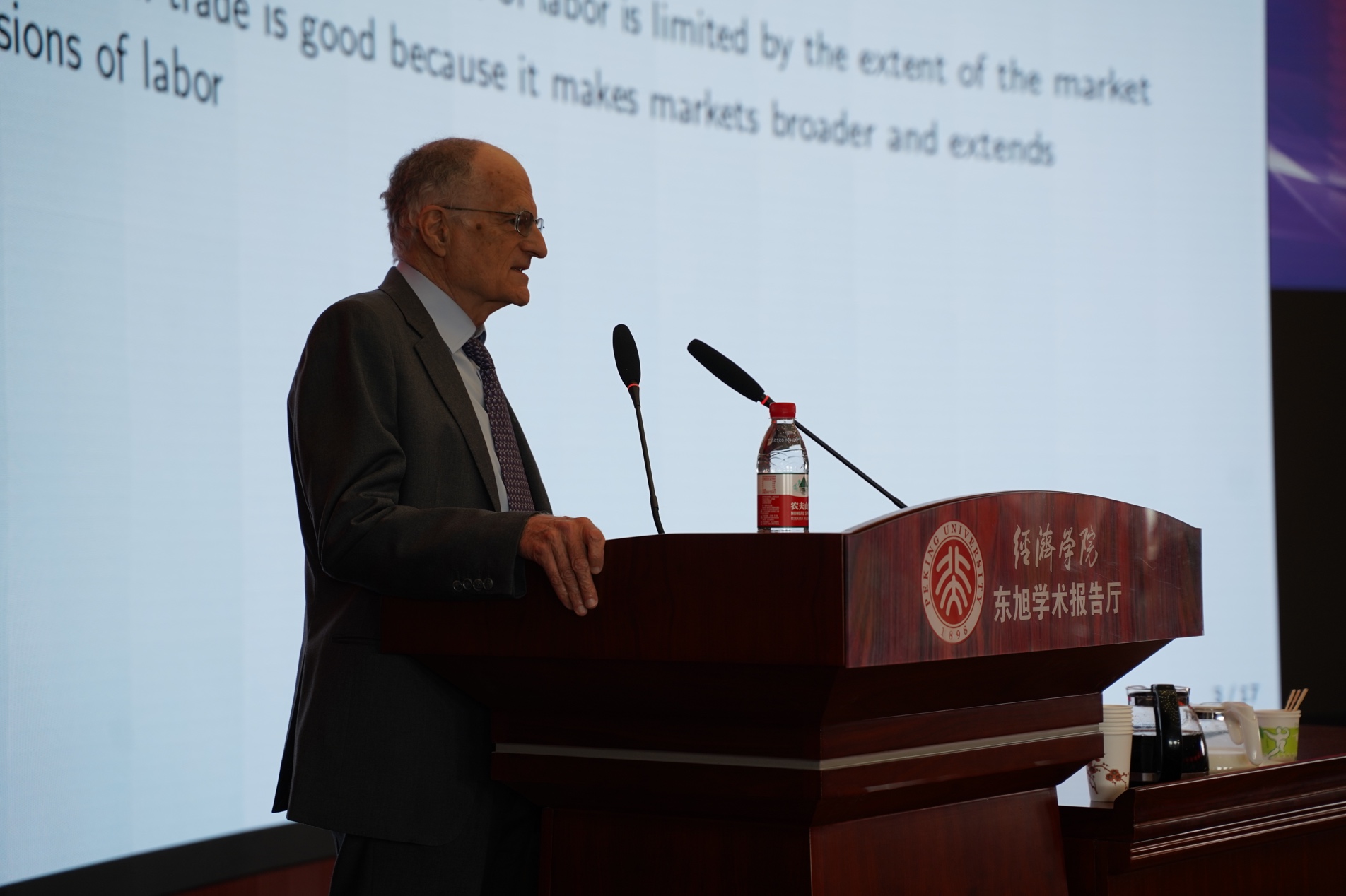On the afternoon of May 10th, 2019, the eighth “New Era China Youth Economic Forum” opening ceremony was held at the Lecture Hall of SEPKU. The forum was hosted by SEPKU and the PKU Youth League Council. Professor Ye Jingyi, Deputy Secretary of the PKU Council, Professor Dong Zhiyong, Dean of SEPKU, Associate Professor Cui Jianhua, Secretary of the SEPKU Council, and Wang Yiming, Peking University Youth League Secretary, attended the opening ceremony. Thomas J.Sargent, awardee of the Nobel Prize in Economics in 2011, attended the ceremony as the distinguished guest. Other participants included almost 100 delegates from School of Economics and Management of PKU, Tsinghua University and 40 other universities at home and abroad.