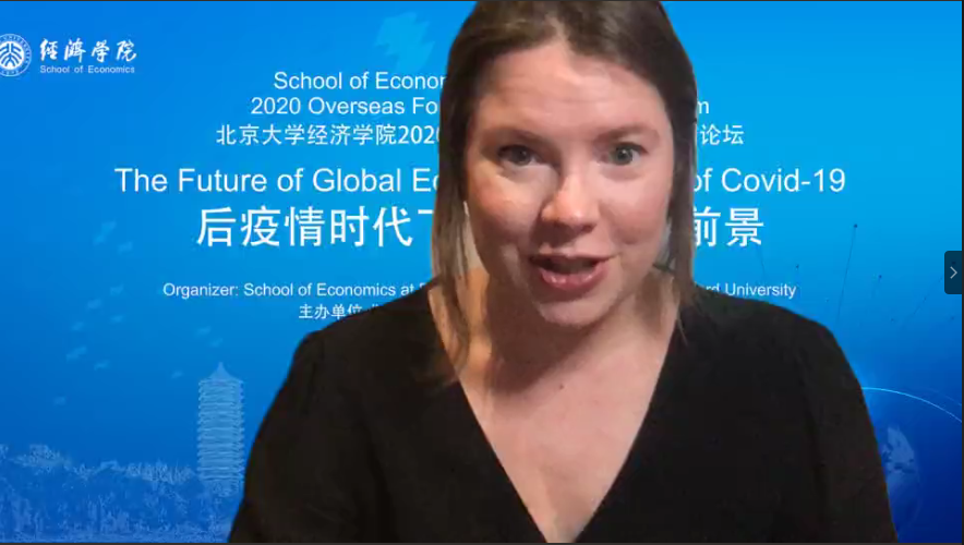 During the keynote speech , Abby Adams-Prasel, Senior Research Fellow of New College, Oxford University and convener of Applied Microeconomics, analyzed the major impact of the COVID-19 on the labor market. She pointed out that the epidemic has exacerbated gender inequality in the labor market, that is, the labor participation rate of women has dropped significantly. Based on this, she gave several propositions on how to respond to the challenges in the labor market caused by COVID-19.
