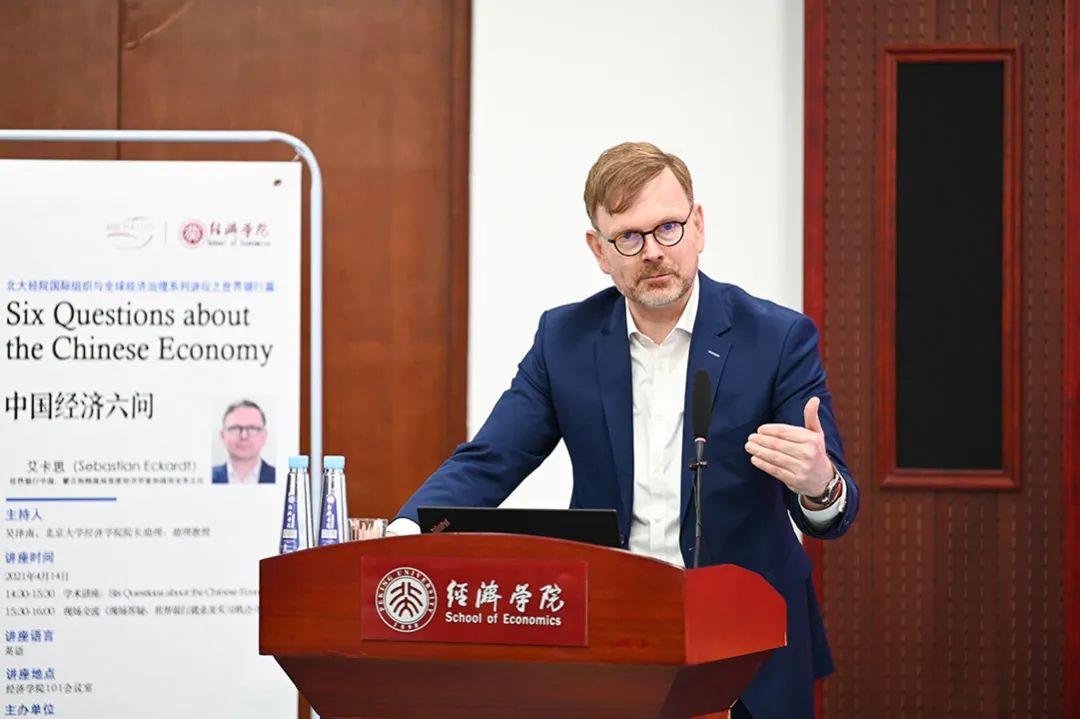 On the afternoon of April 14, 2021, the first lecture of "International Organizations and Global Economic Governance " of the School of Economics at Peking University was successfully held in the Chu Jiwang Lecture Hall of the School of Economics. Dr. Sebastian Eckardt, the World Bank’s Lead Economist and Program Leader for China, Mongolia and Korea, published an academic report on the theme of "Six Questions about the Chinese Economy". More than 60 teachers and students from the university attended the lecture.