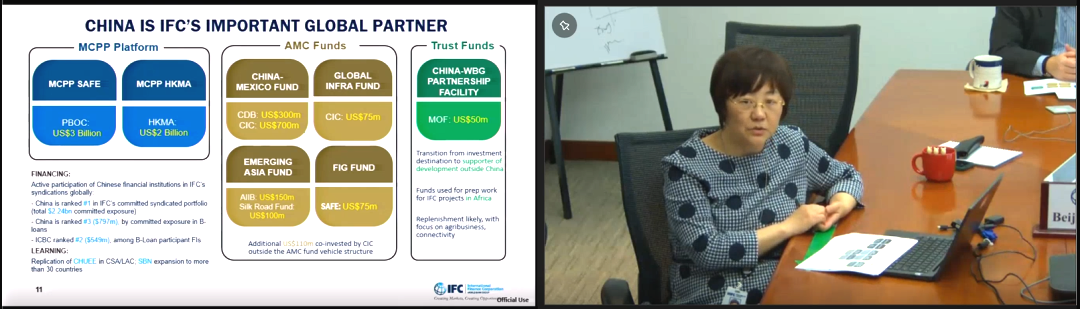 Then, Zhu Wenqin reviewed the three stages in the course of cooperation between the International Finance Corporation and China. She pointed that the cooperation between IFC and China is constantly changing.