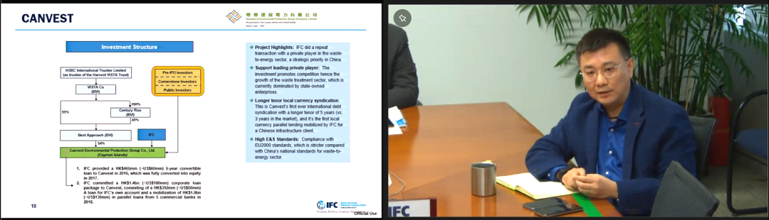 In the end, Mr. Sun Hao, a senior investment officer of the Ministry of Infrastructure and Natural Resources Industry of the International Finance Corporation introduced in detail the cooperation between IFC and China in the field of green environmental protection.