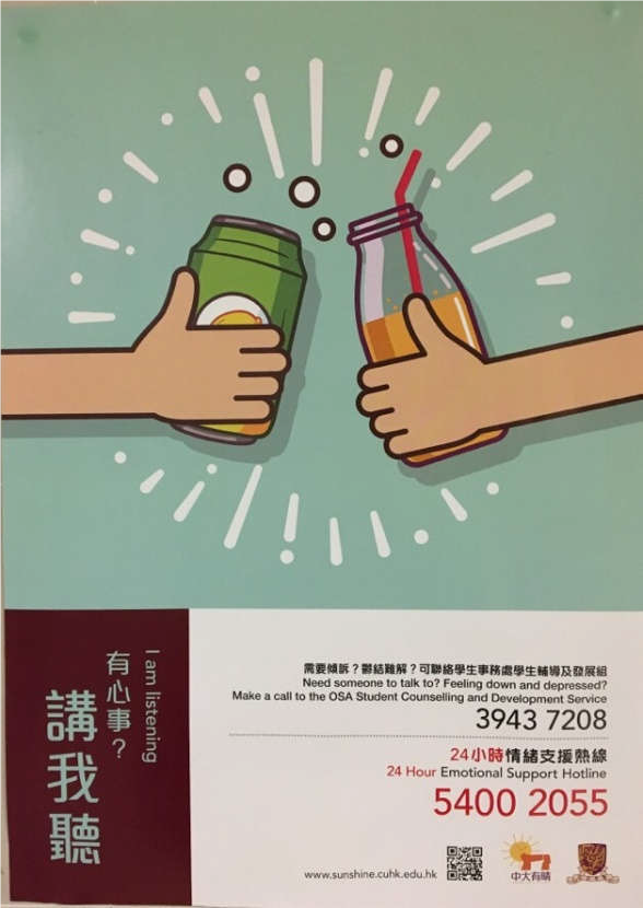 随处可见的心理健康宣传海报,以及24 小时心理咨询热线